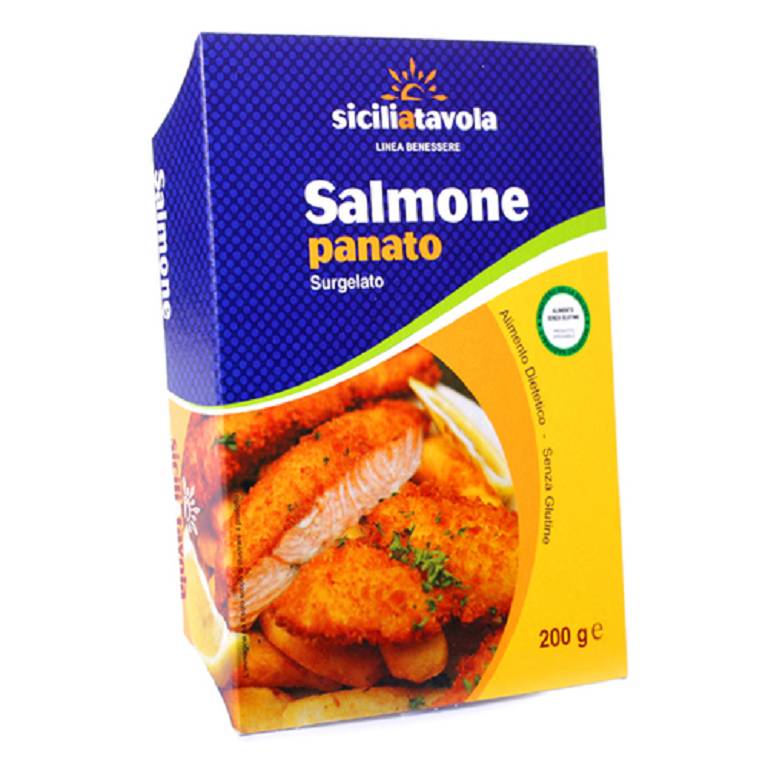 Salmone, amido di mais, farina di riso tipo semolino, crema di riso, farina di riso, lievito naturale,